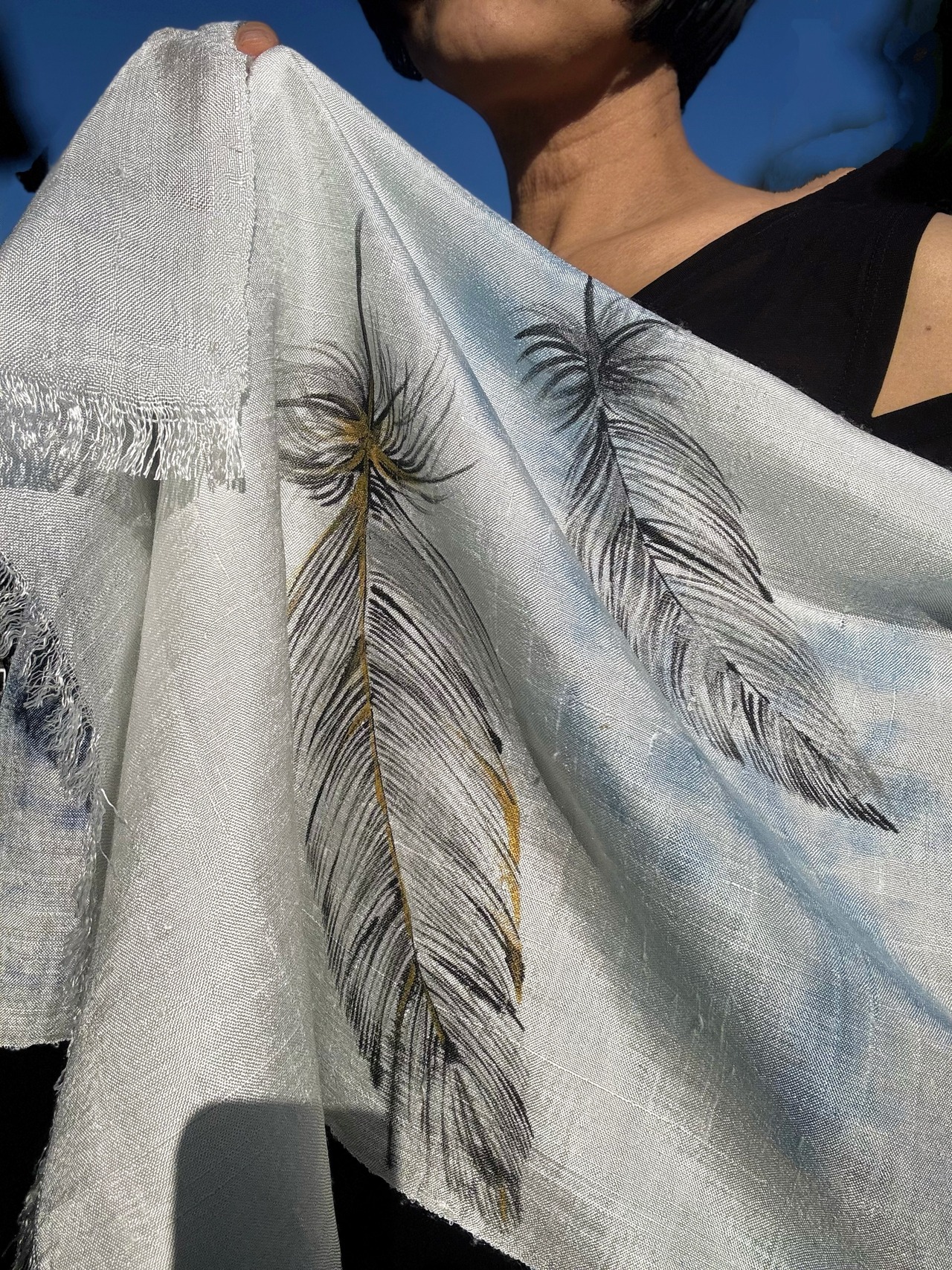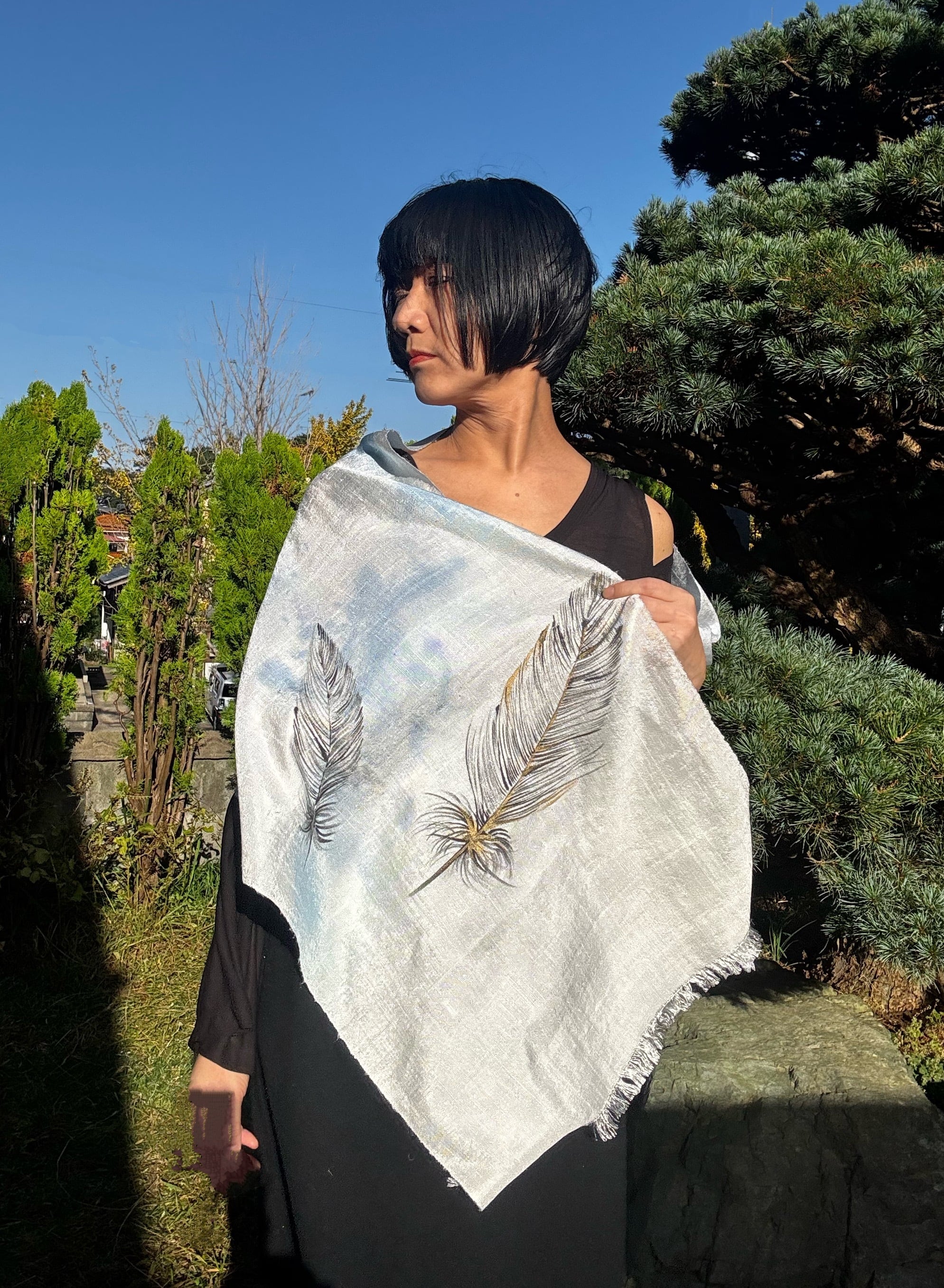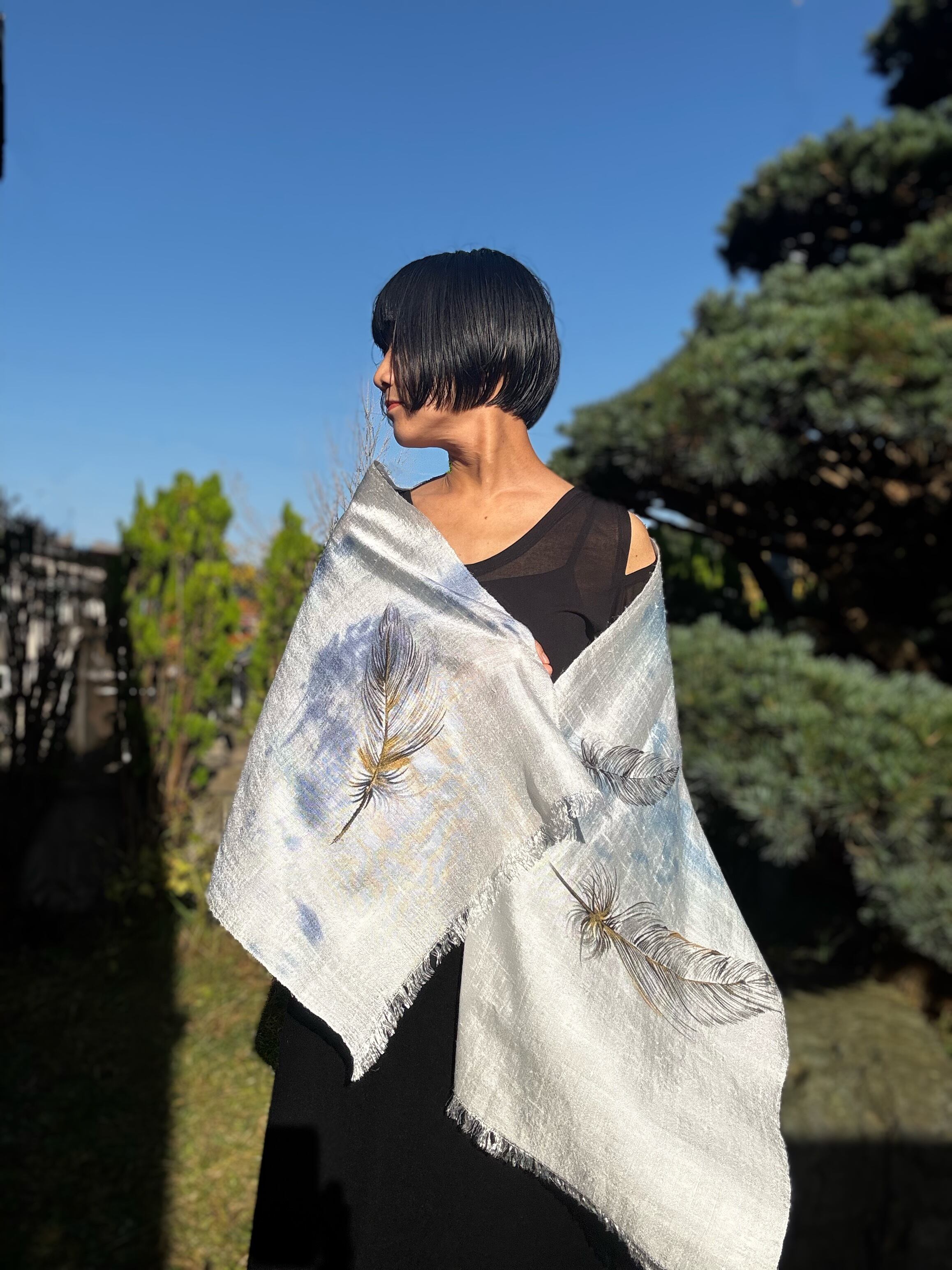 墨書きのやわらかなラインで羽根を描いています。